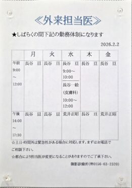外来担当医変更のお知らせ