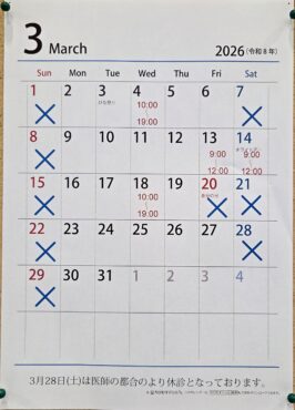 2026年3月の歯科診療日のお知らせ
