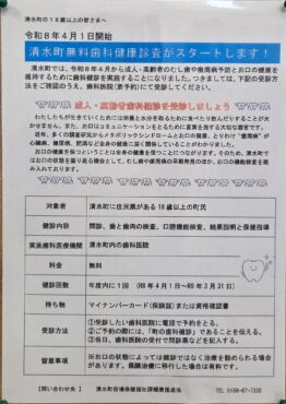 清水町 無料歯科健康診査が開始されました。